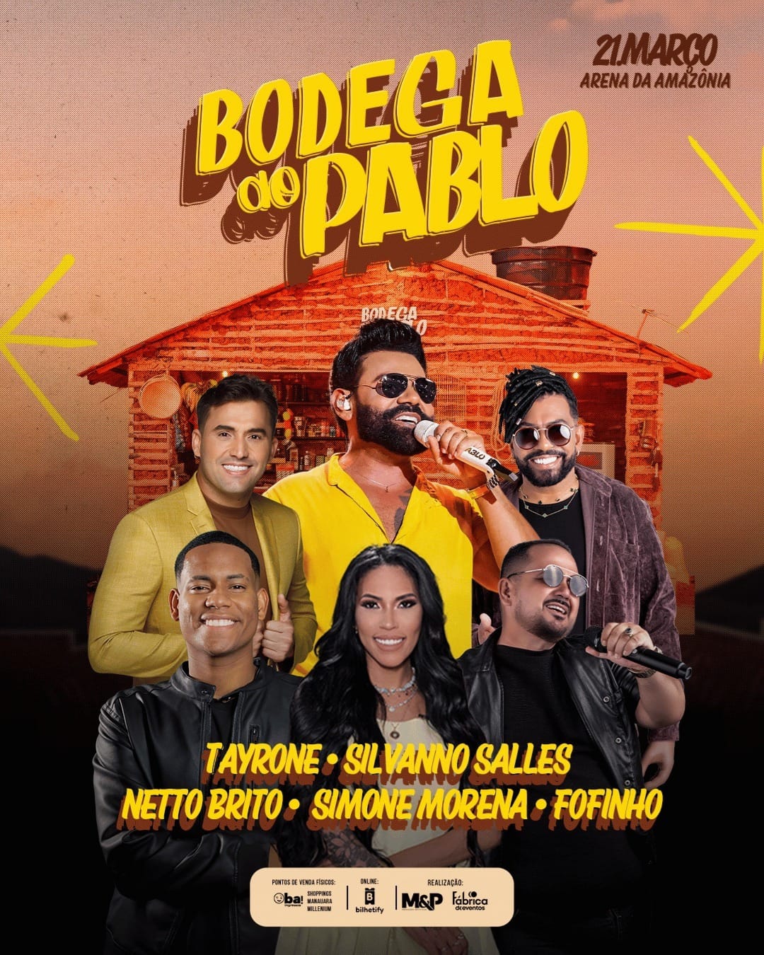 A contagem regressiva começou para o evento mais aguardado por todos: Bodega do Pablo! No dia 21 de março de 2026, às 20h a Arena Amazônia - Manaus vai se transformar no cenário perfeito para essa experiência inesquecível!